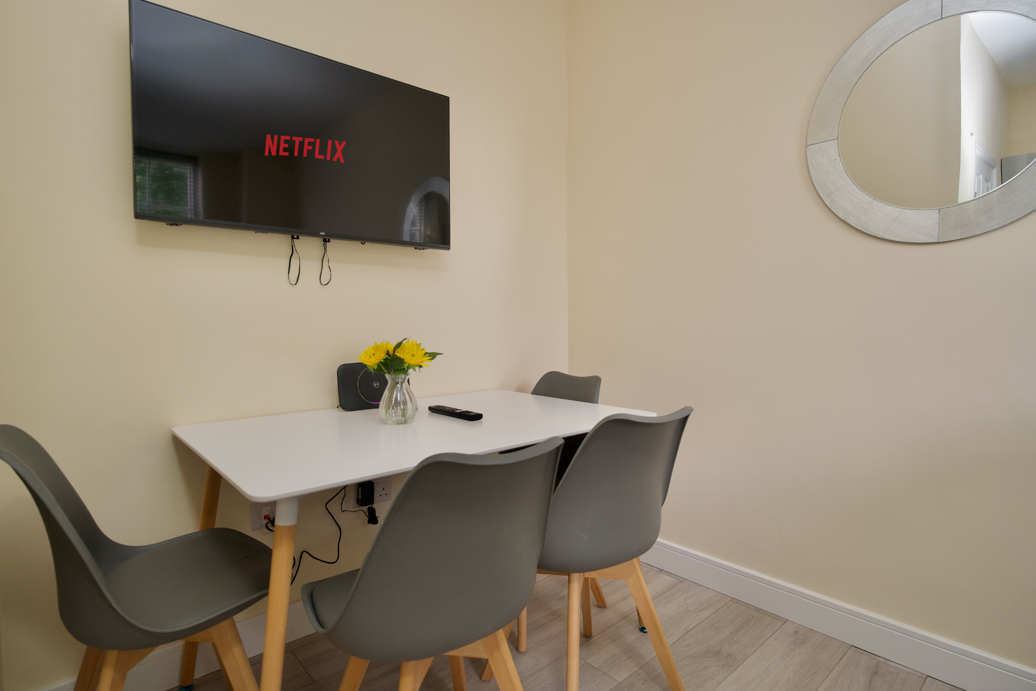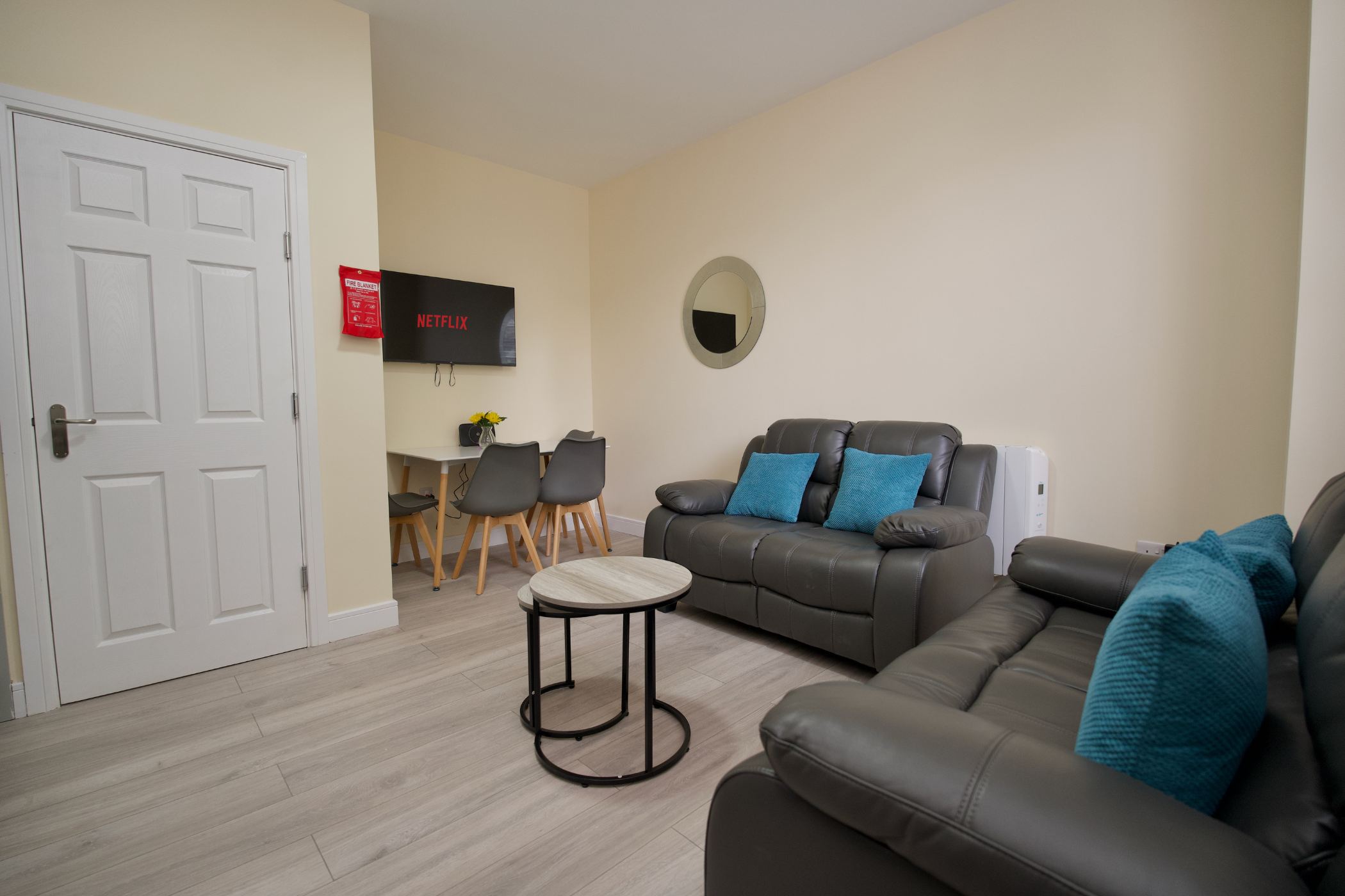 Situated just a 2-minute walk from Coventry Train Station, this modern first-floor flat offers convenience, comfort and privacy. The apartment boasts a bright and spacious living room with two cosy two-seater sofas, a dining table with four plush chairs, and a Smart TV mounted on the wall – perfect for unwinding after a day of sightseeing or work.