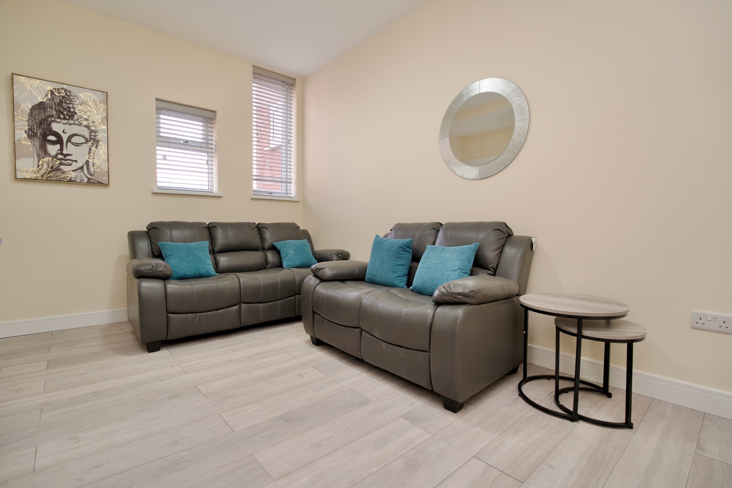 [Flat 3] – Welcome to your stylish home away from home in a block of 5 apartments on Warwick Row – a spacious two bedroom first floor apartment right in the heart of Coventry city centre. Just a 2-minute walk from Coventry Train Station, this beautifully furnished flat is perfect for business travellers, families, contractors or groups of up to 6.