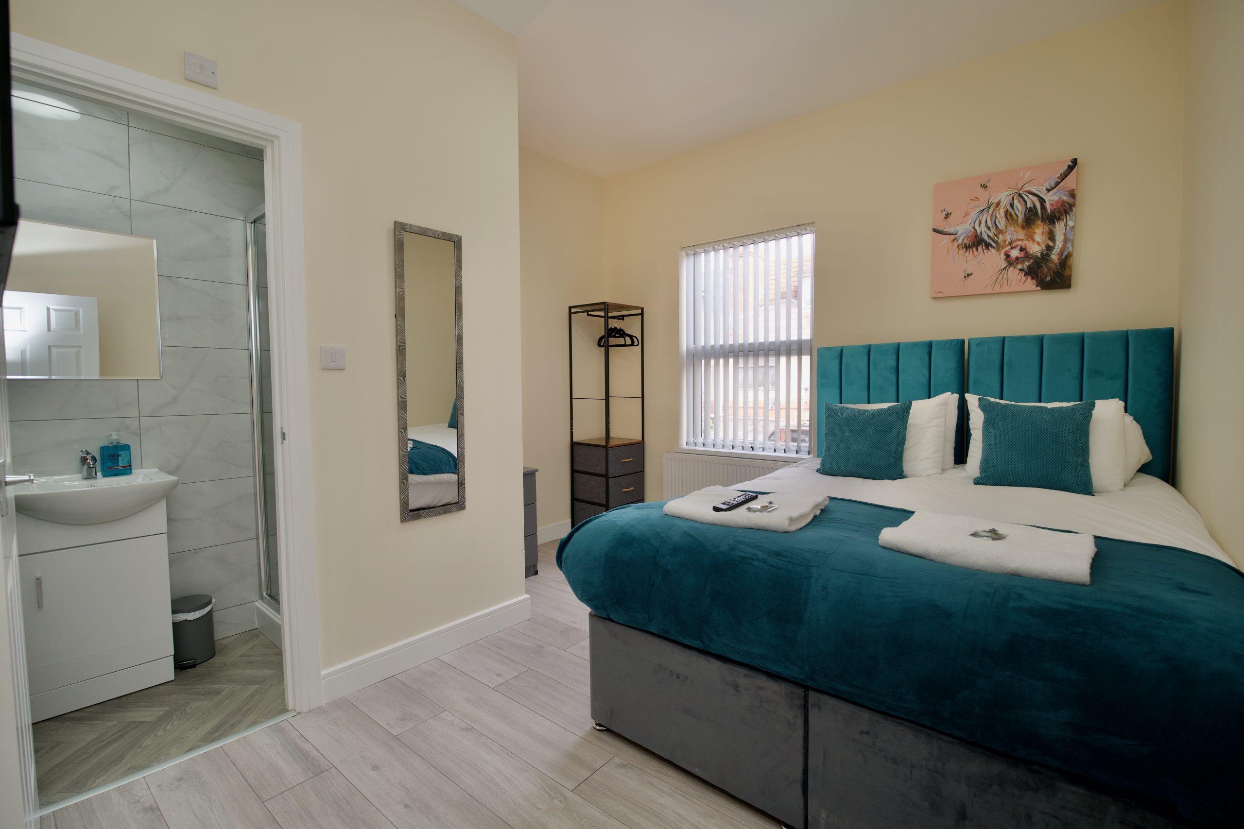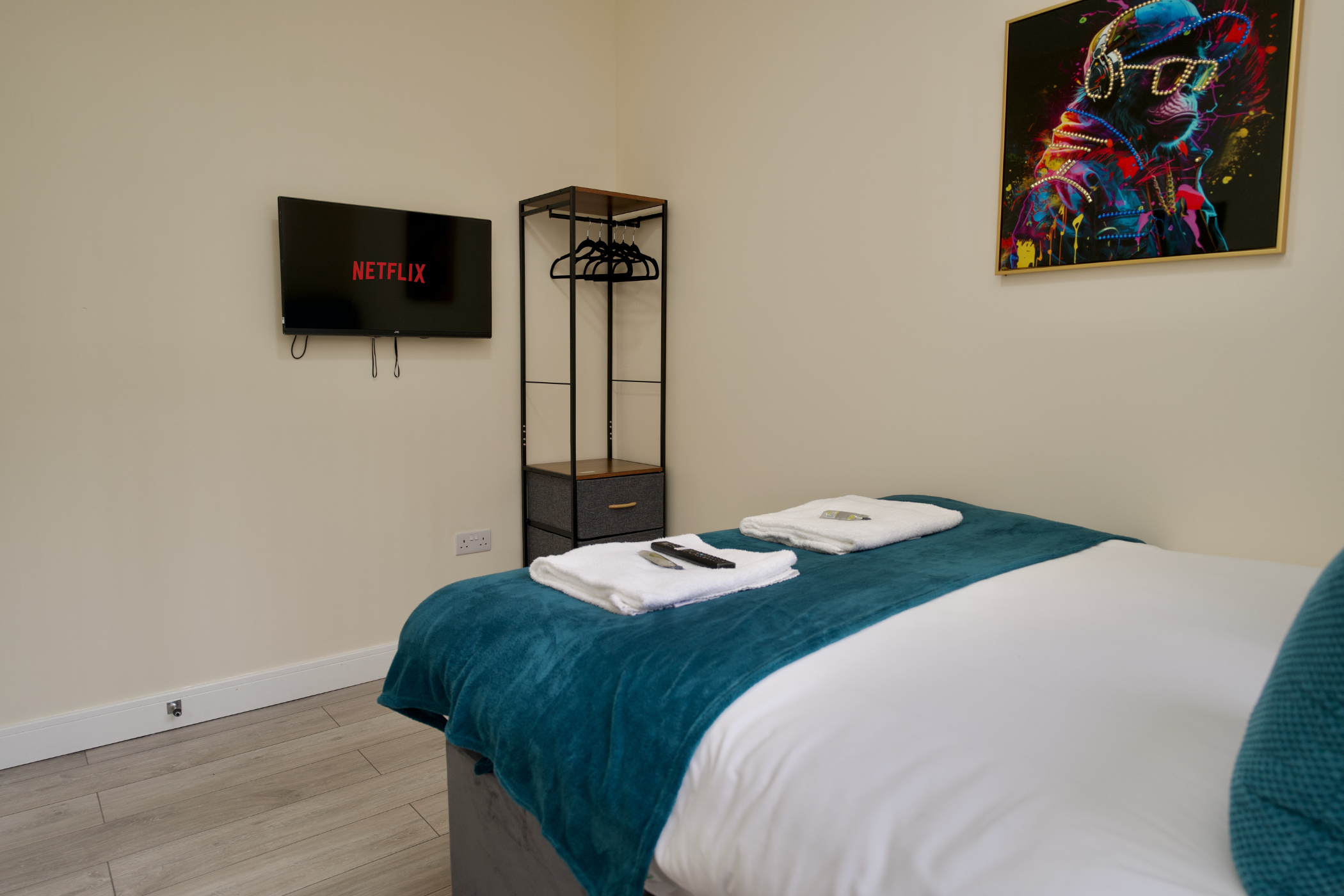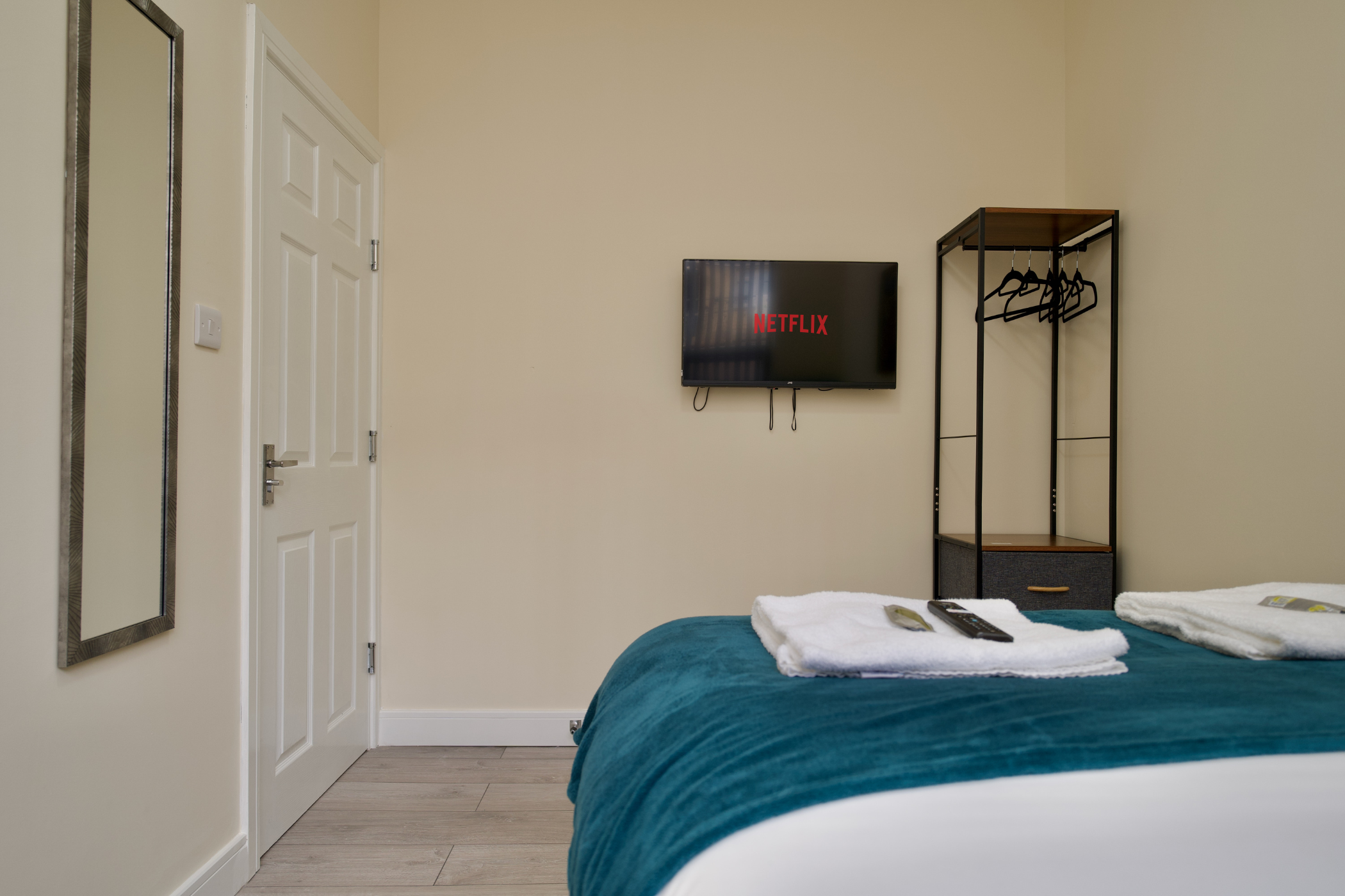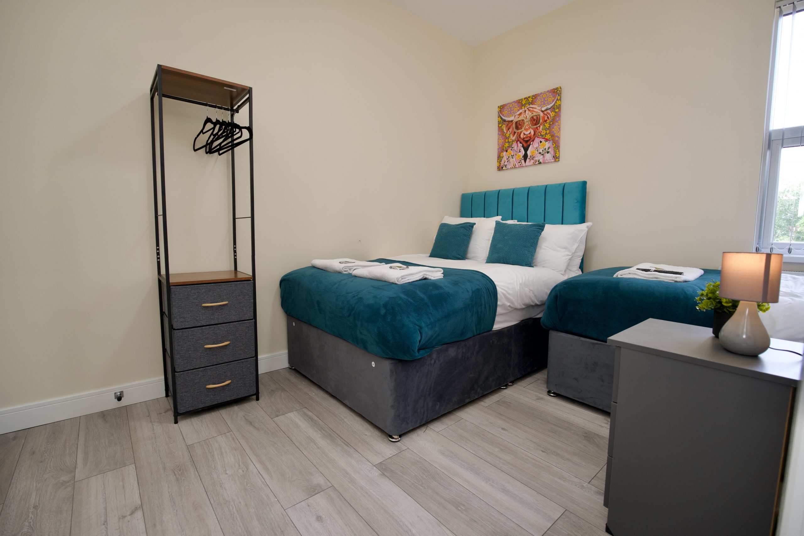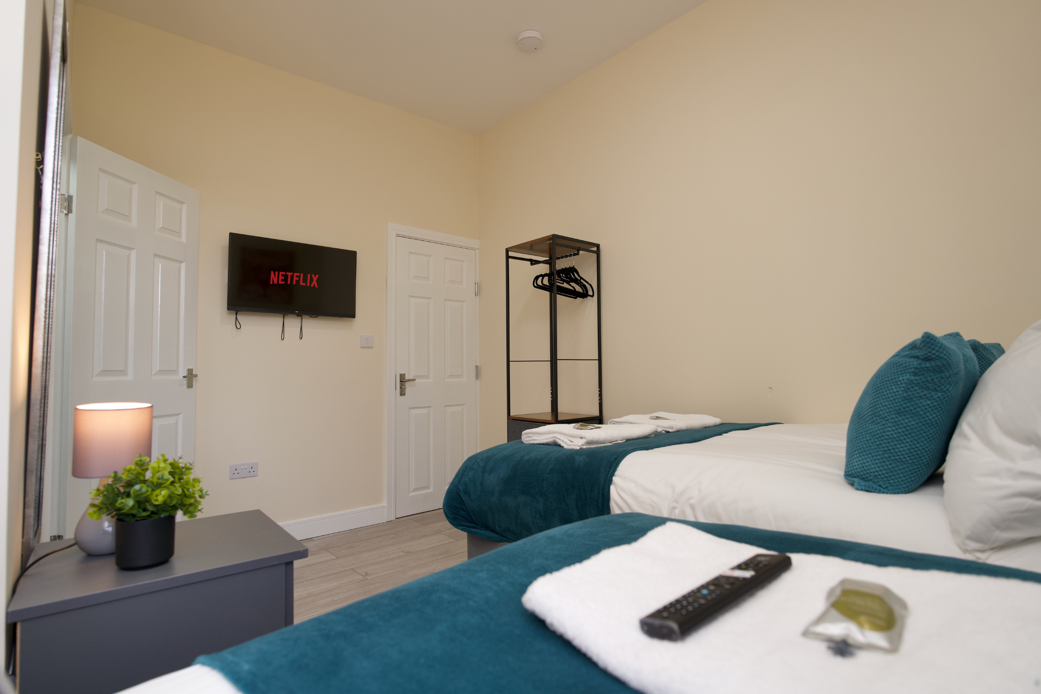 Each bedroom includes a bedside table with storage, clothes rail, and Smart TV for your streaming needs.
