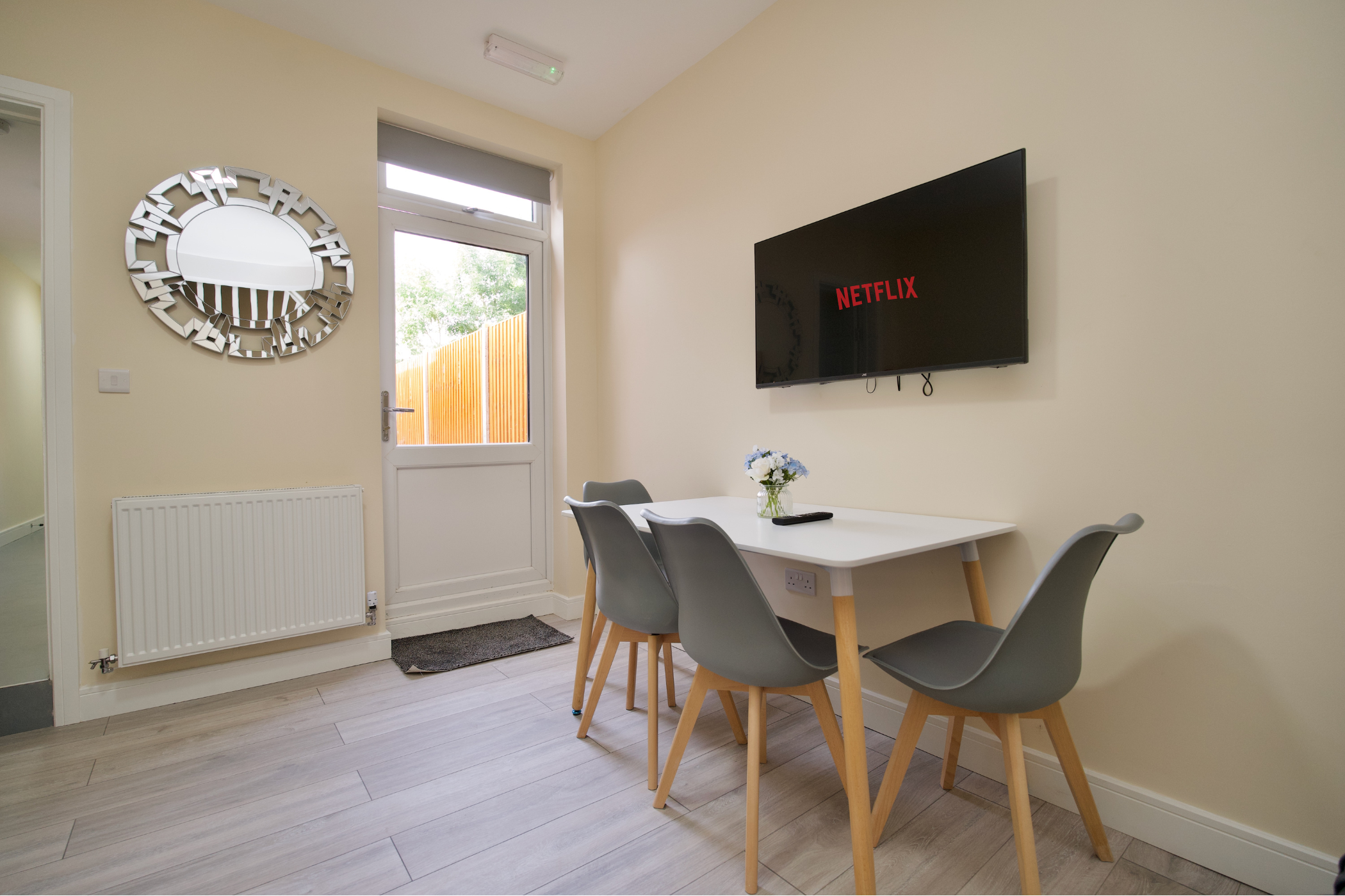 Bedroom 3: Double bed and wall-mounted Smart TV