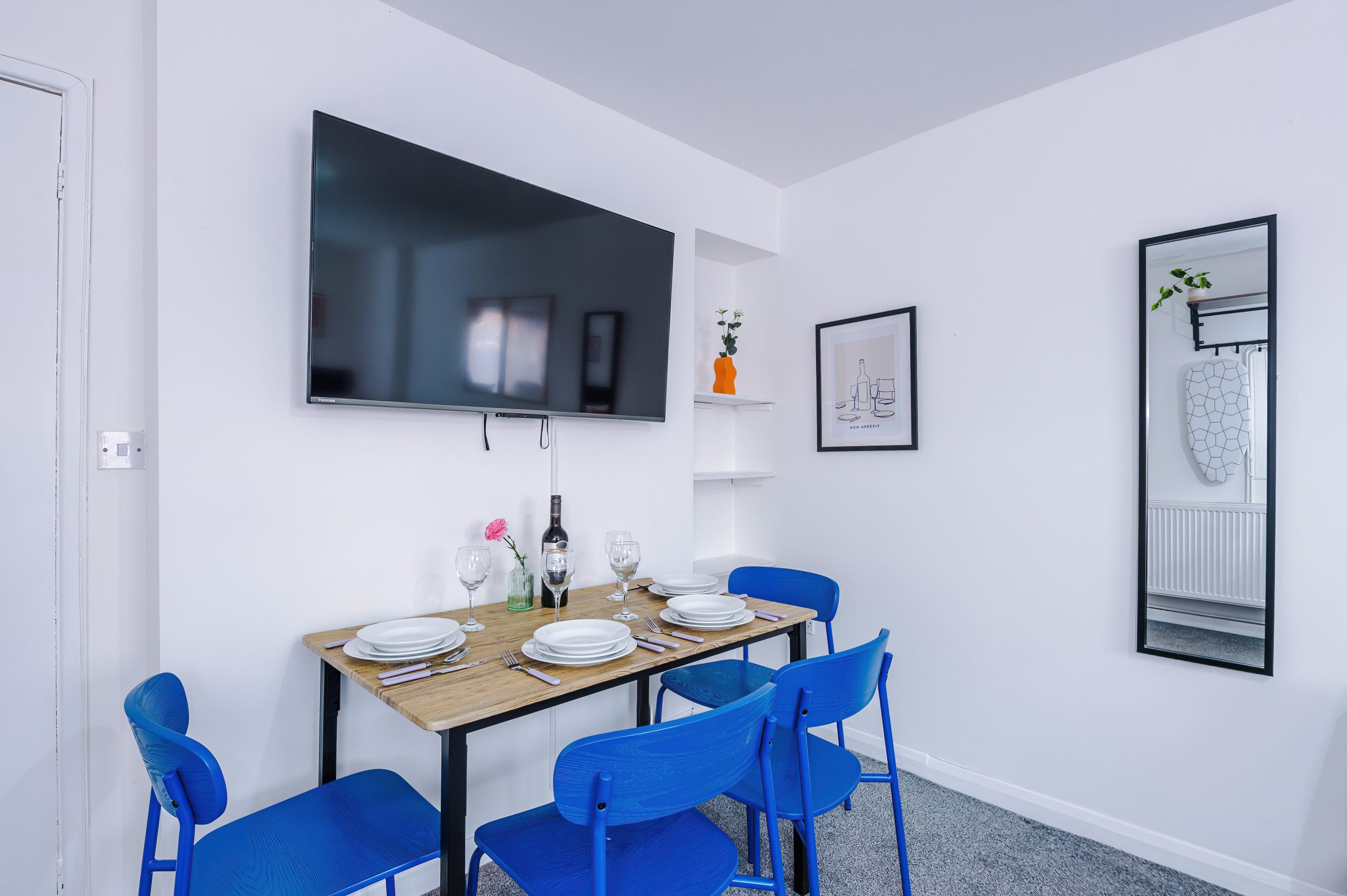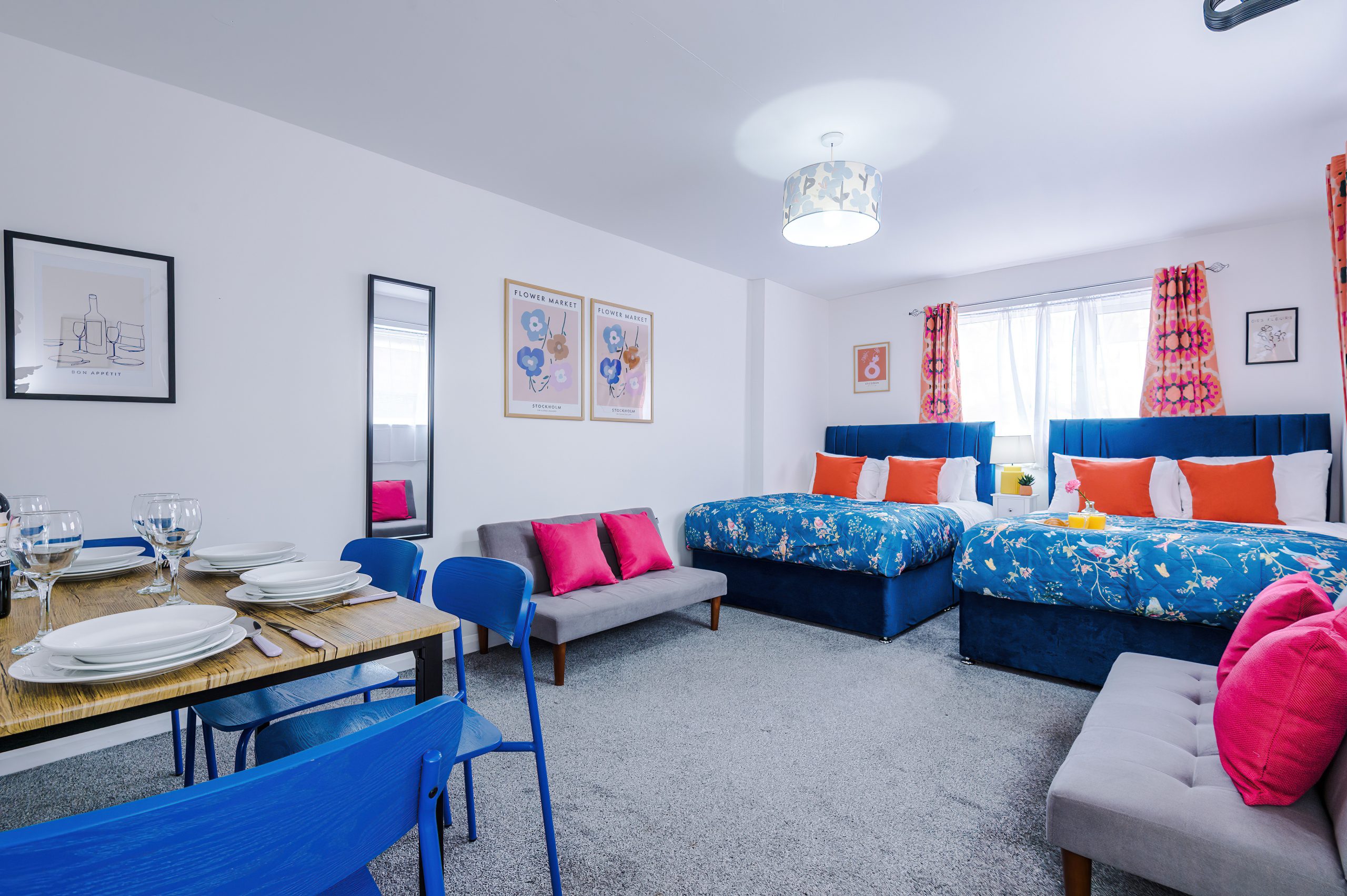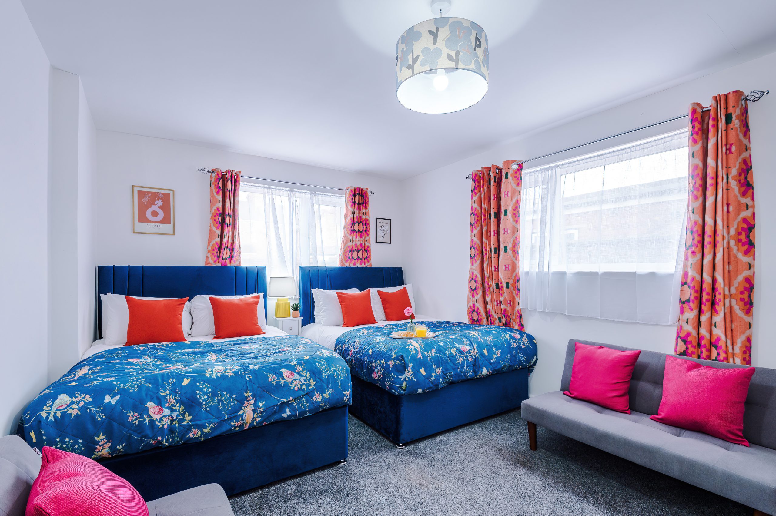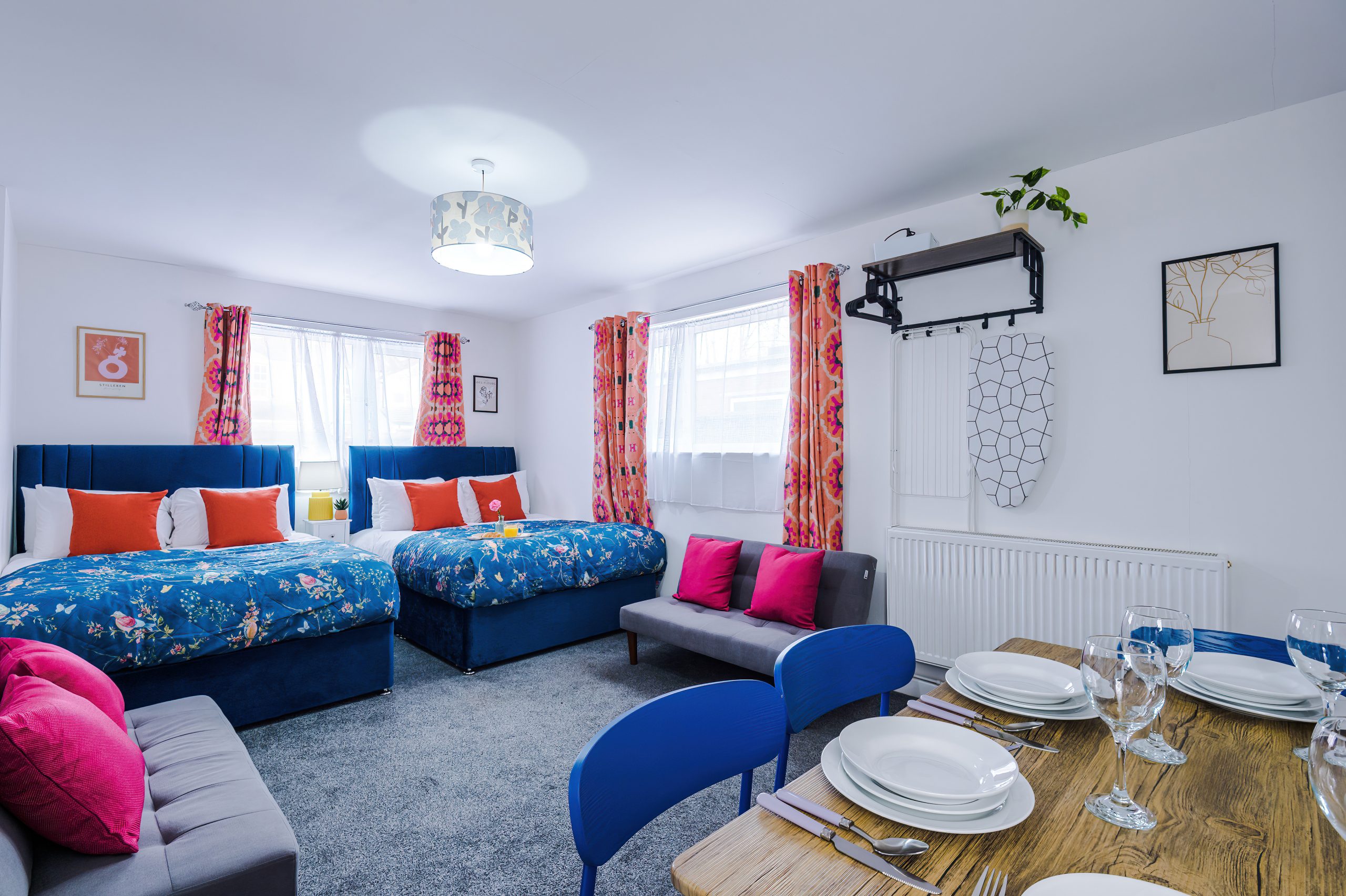 Step into your modern and thoughtfully designed space, featuring two luxurious double-size beds with soft bedding for ultimate comfort. Unwind with entertainment on the 50-inch Smart TV, wall-mounted for perfect viewing. Enjoy complimentary access to Netflix, Amazon Prime, and Disney+ at no extra charge – all pre-logged in so you can relax and binge-watch your favourite shows or movies with ease.