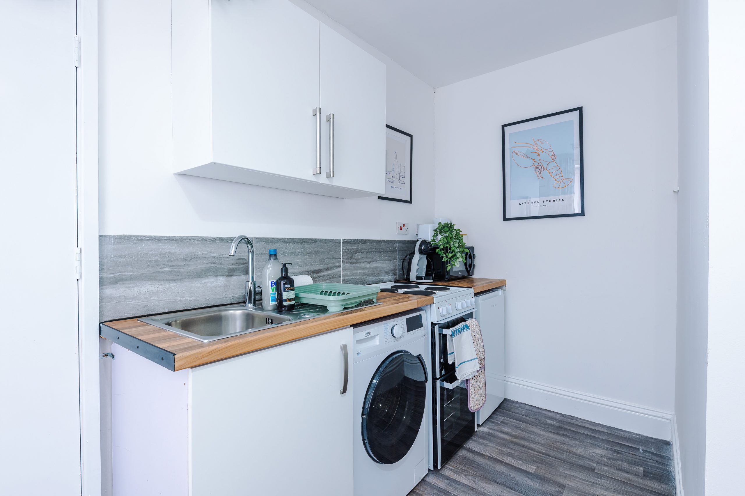The well-equipped private kitchen is perfect for all your culinary needs featuring a washing machine and dryer, fridge, microwave, oven, a coffee machine with complimentary pods, tea, coffee, sugar sachets and all essential utensils, crockery, and appliances. Whether you fancy cooking a full meal or just preparing a quick snack, everything you need is right here.