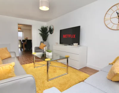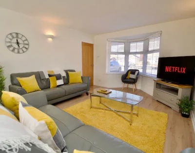 Enjoy your stay in this spacious 2-bed, 2-bath home just 3 mins from Coventry City Centre. Perfect for couples, families, contractors & business guests. Featuring 2 cosy lounges, a private garden, superfast Wi-Fi, free Netflix & secure gated parking for 5 cars. Located in a peaceful neighbourhood, fully furnished for long or short stays. Easy access to local shops, hospitals & business parks. Your ideal home-from-home in Coventry!