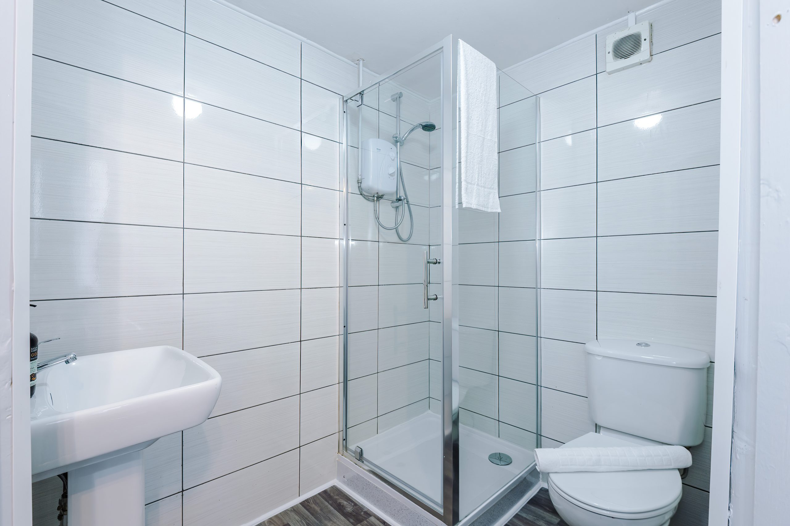 Your private ensuite shower room is immaculately clean and equipped with a shower, toilet, and sink. The entire studio is on a single level, ensuring accessibility for all.