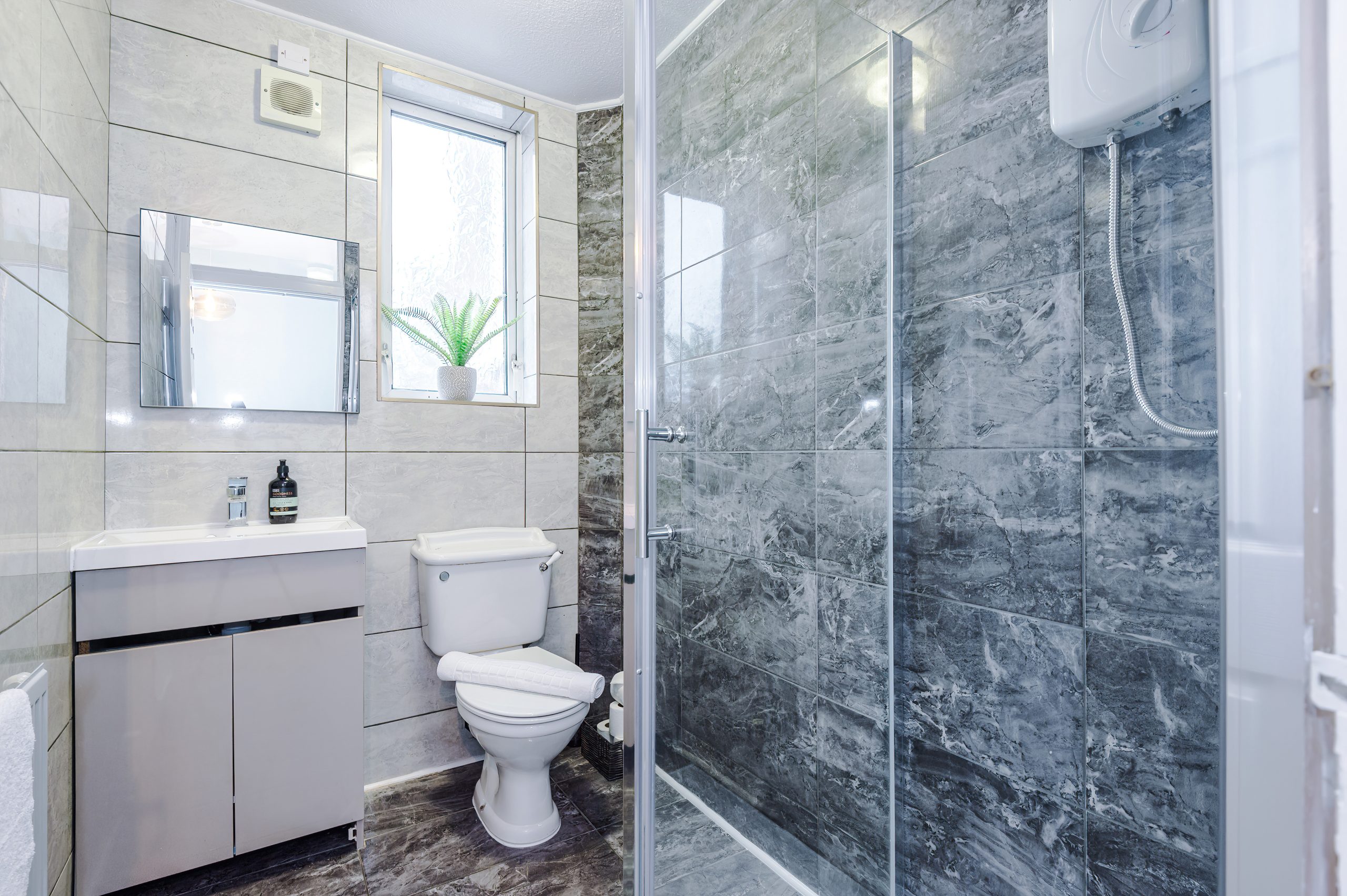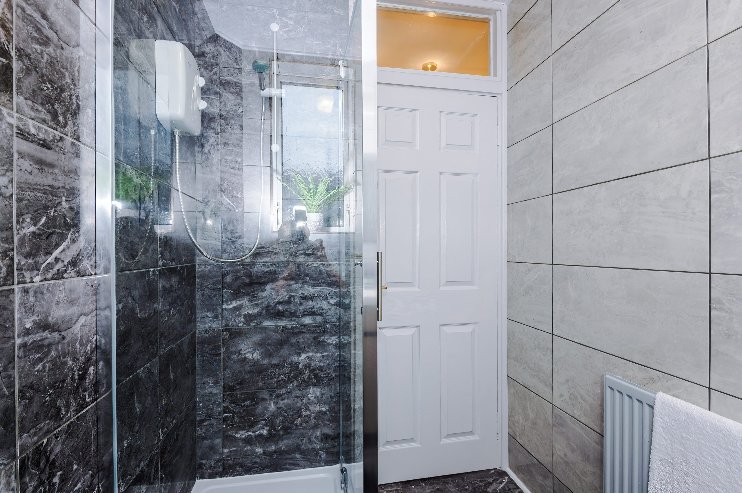 Your private ensuite full shower room is immaculately clean and equipped with a shower, toilet, and sink. The entire studio is on a single level, ensuring accessibility for all.